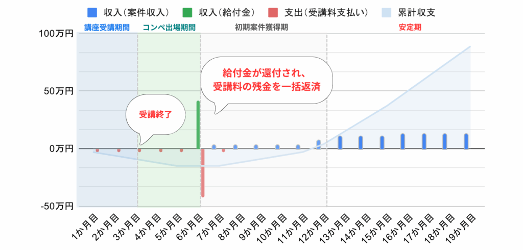 給付金を活用し、自己負担額を抑えて早期の累計収支黒字化を目指します!